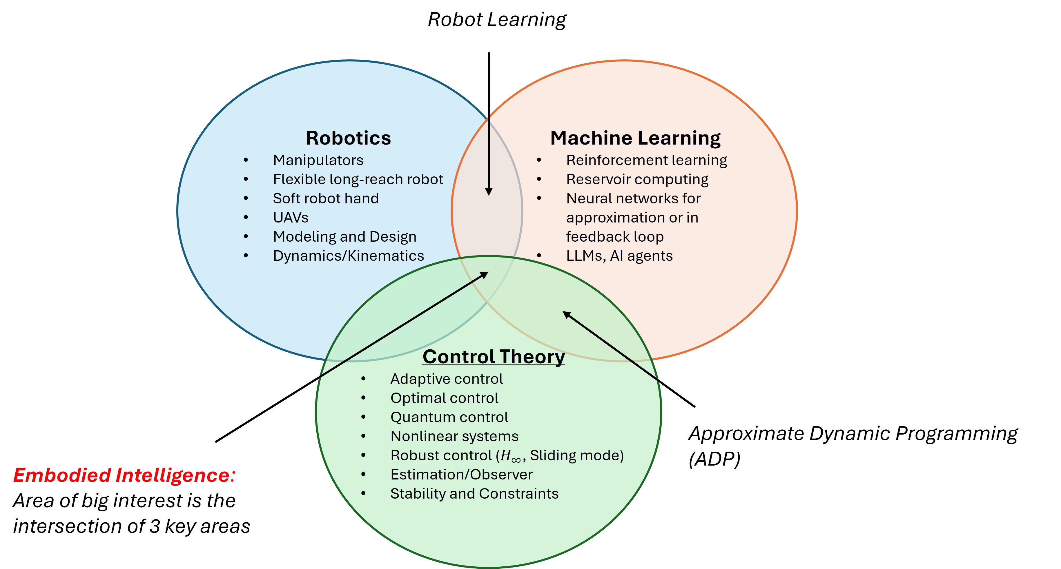 My research lies at the intersection of control theory, machine learning, and robotics, with a particular emphasis on embodied intelligence and safe learning-based control for complex real-world systems. My work spans a broad spectrum of applications in unmanned aerial vehicles (UAVs), propulsion systems, aero-engines, robot manipulators, soft/rigid robotic hands, and quantum systems.